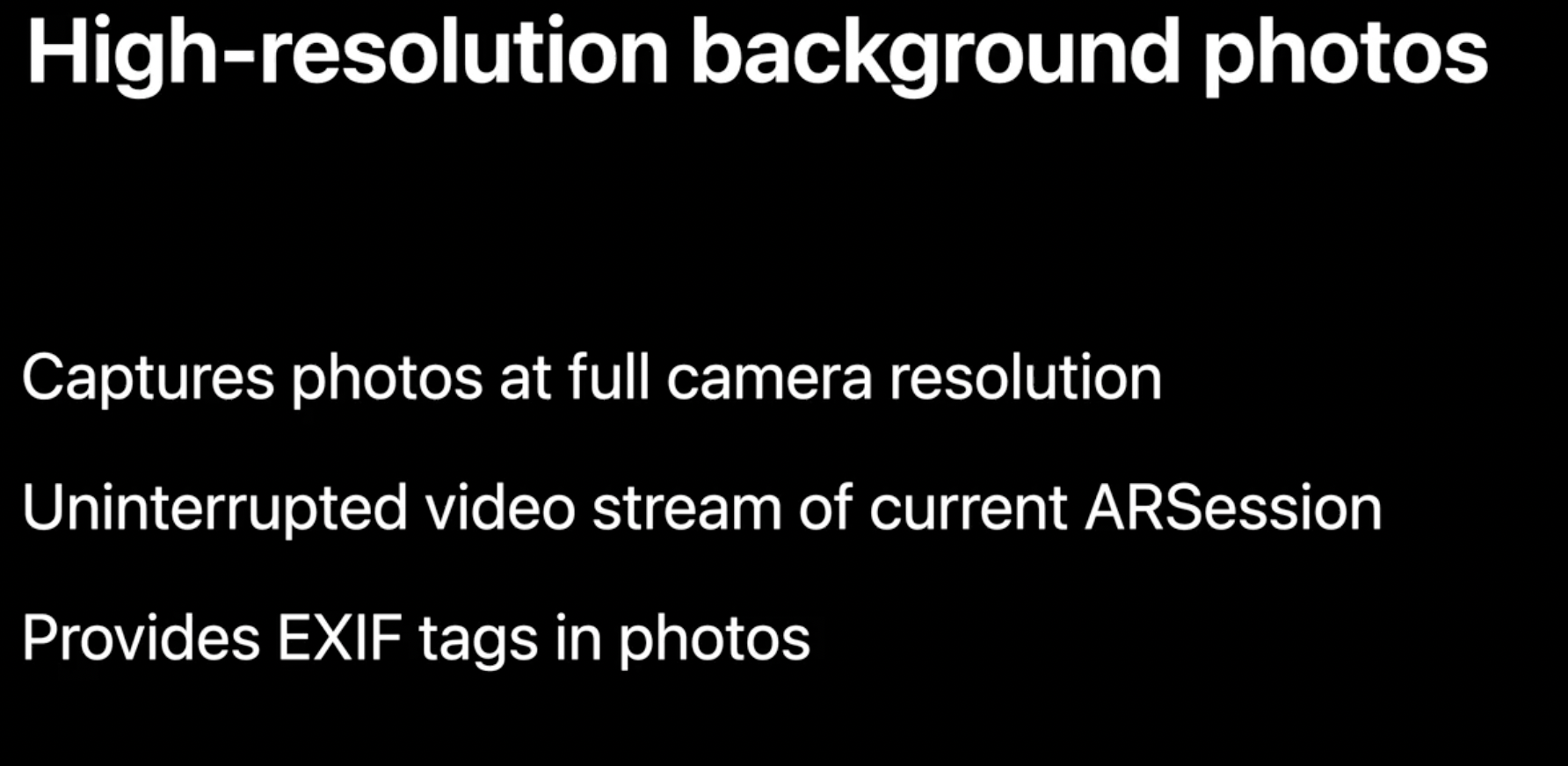 뿐만아니라, ARKit6는 새로운 High-Resolution Background Photos API를 제공한다.