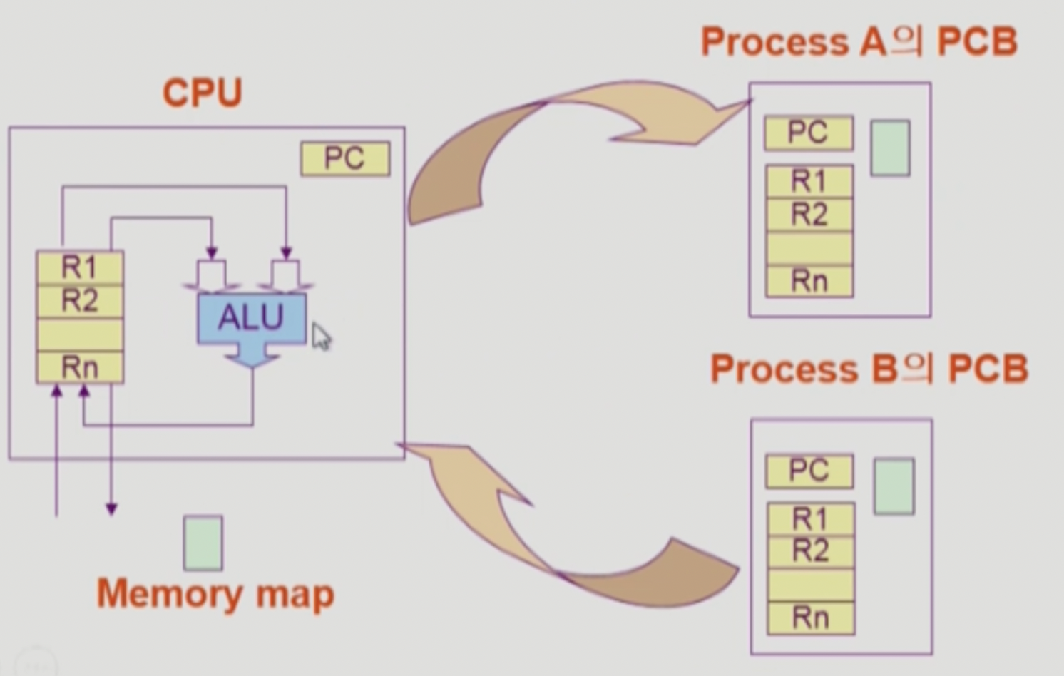- CPU를 내어주는 프로세스의 상태를 그 프로세스의 PCB에 저장