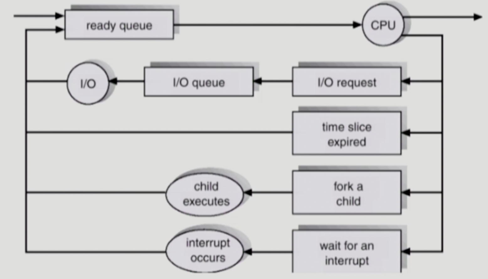 - time sharing system에는 보통 장기 스케줄러가 없음(무조건 Ready)