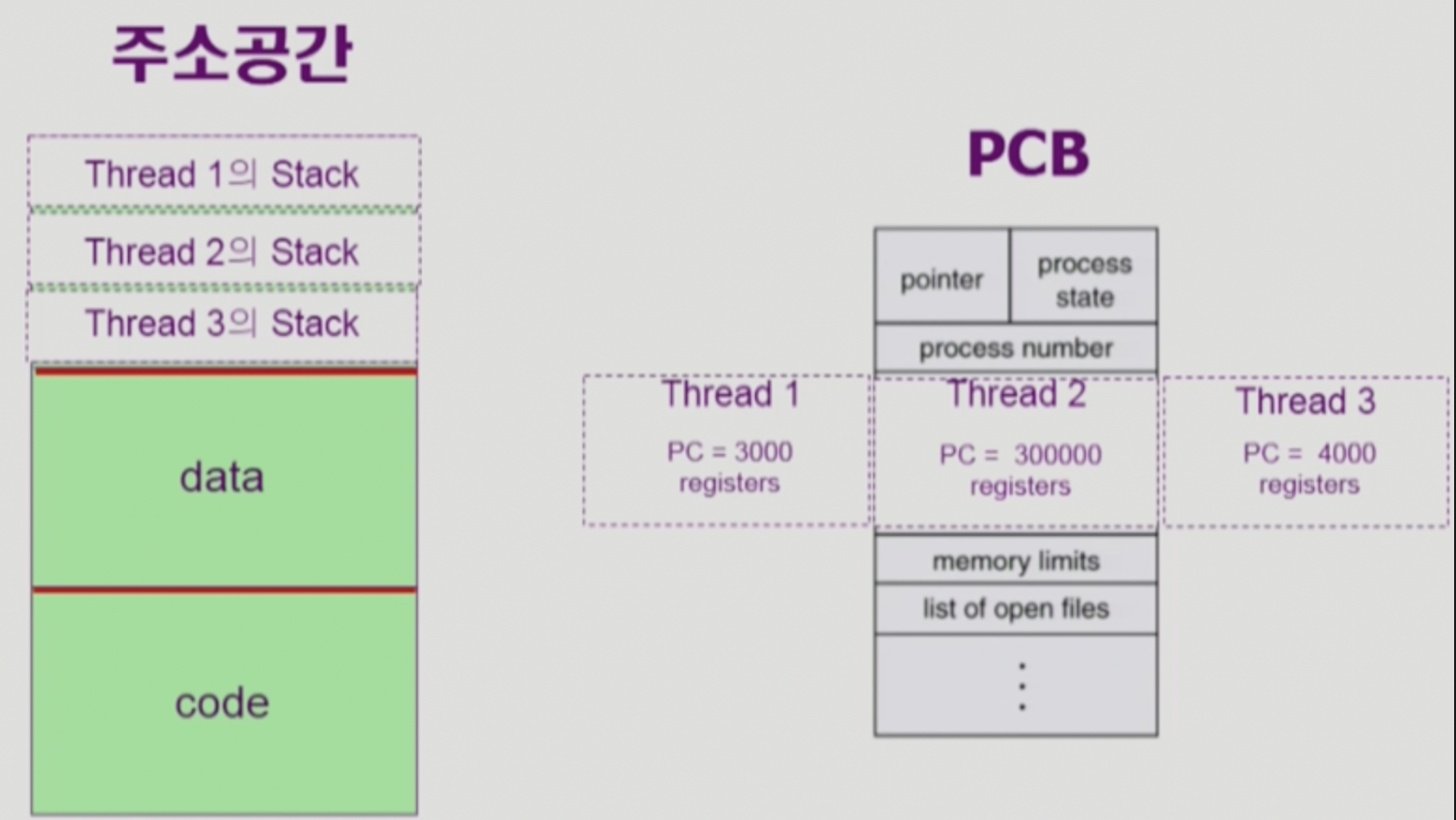 - n threads can share binary code, data, resource of the process