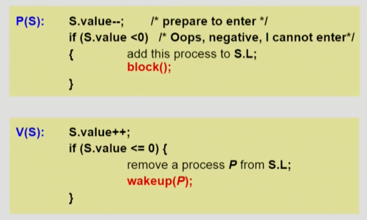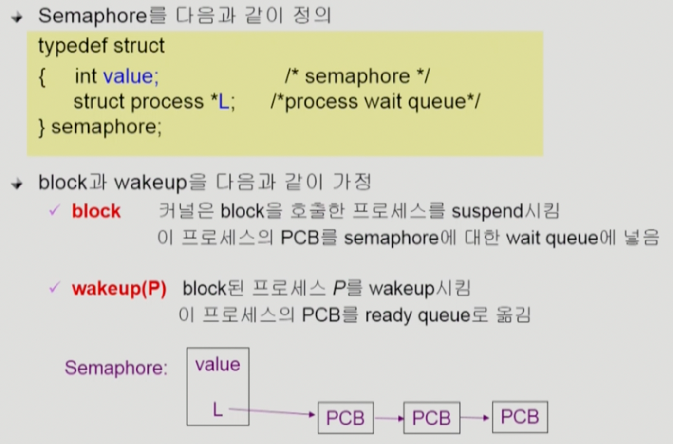 - Critical section의 길이가 매우 짧은 경우 Block/Wakeup 오버헤드가 Busy-wait오버헤드보다 더 커질 수 있음