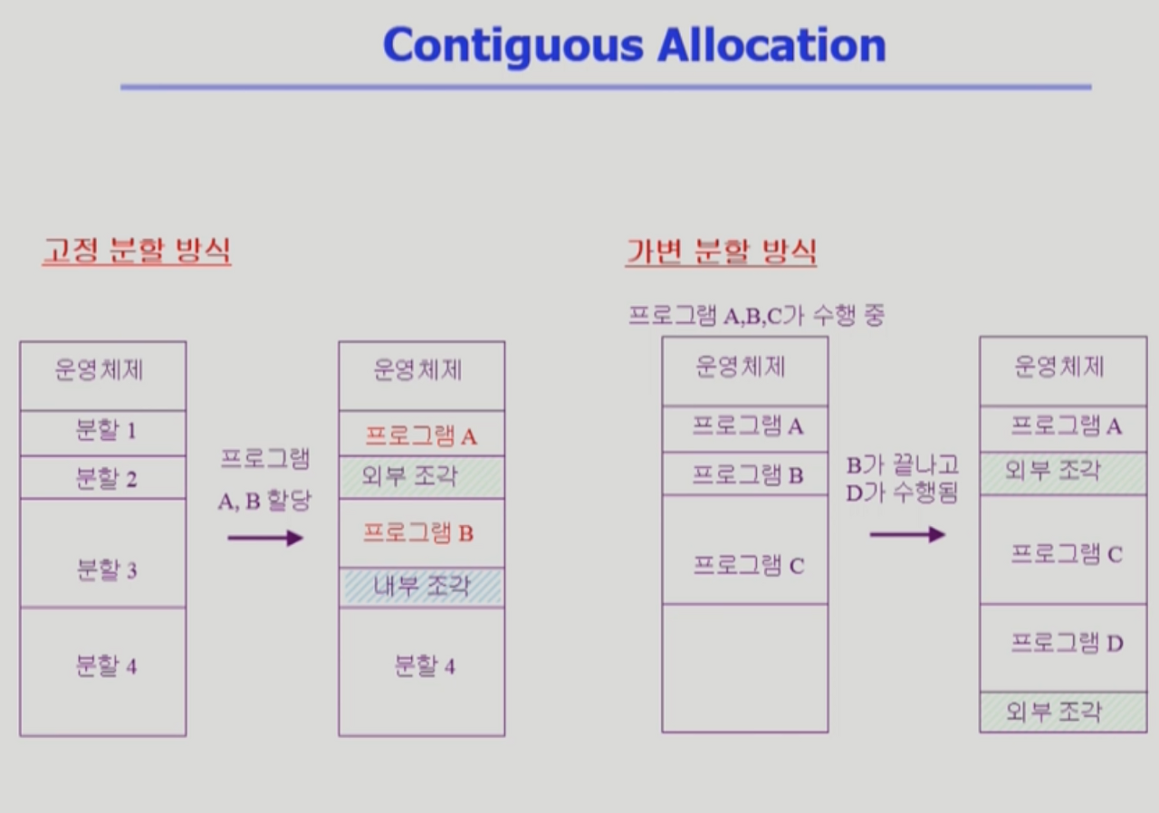 - 2가지 할당 기법을 배운다. → 연속 할당과 불연속 할당