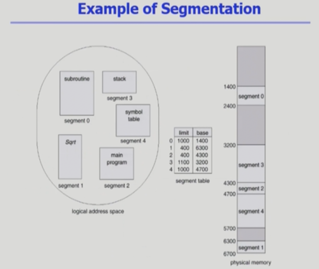 → segment는 의미 단위이기 때문에 공유와 보안에 있어 paging보다 훨씬 효과적이다 (eg. 의미 단위로 권한부여 등)