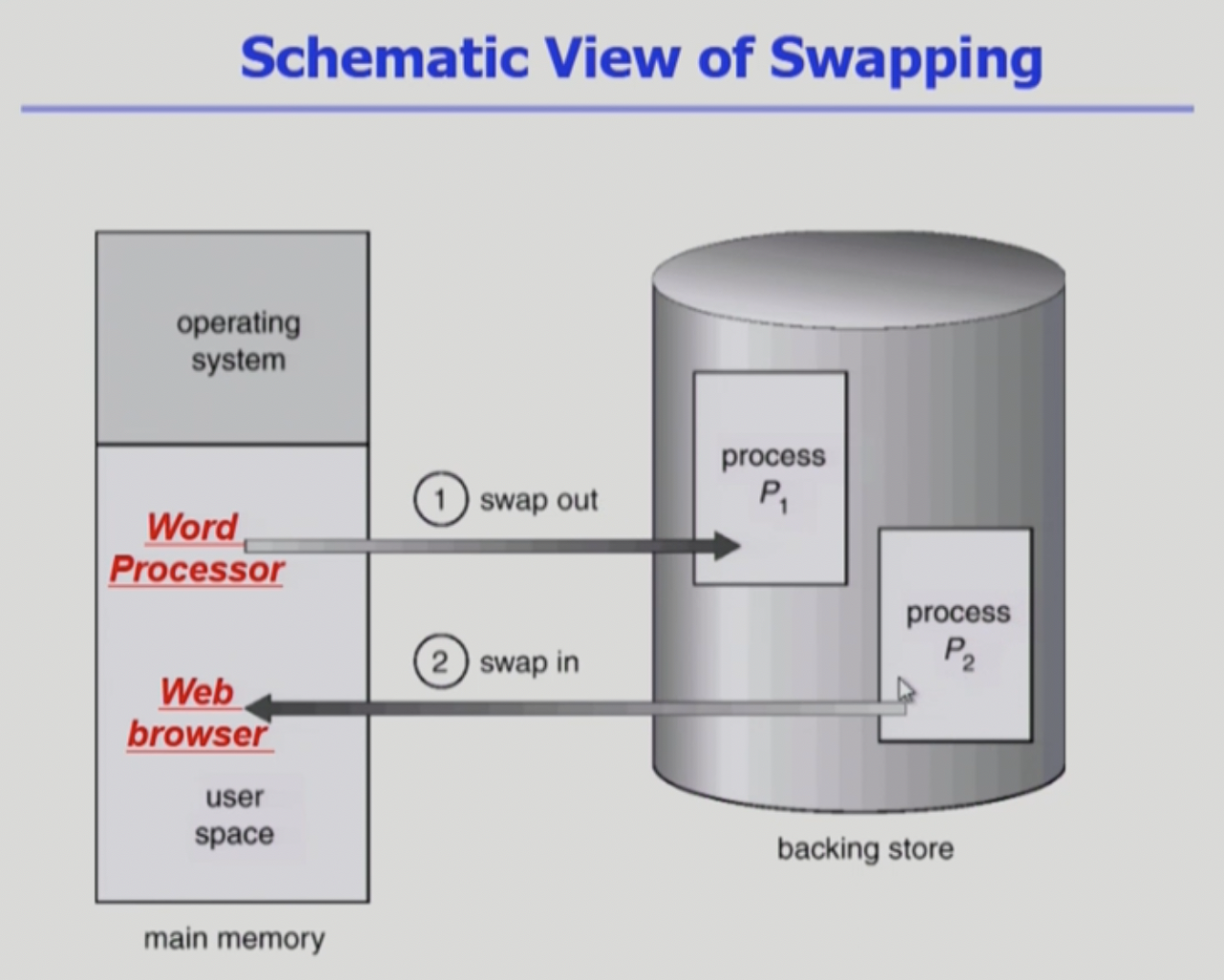 - 주의: 운영체제가 관리하는 프로세스가 메모리에 올라갔다 다시 내려가는 동작(페이징 기법)이랑은 본질적으로 다름 → 하지만 요즘에는 용어를 혼용하기도 함