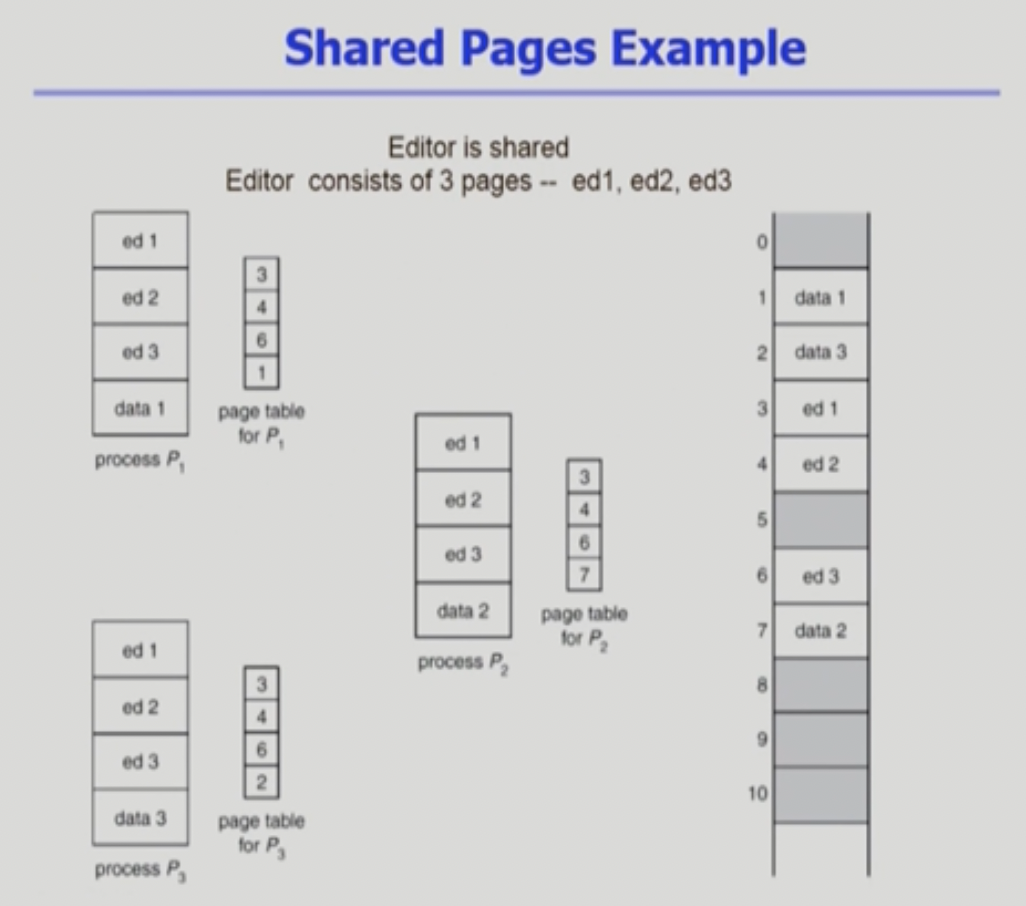 - Shared Code는 모든 프로세스의 logical address space에서 동일한 위치에 있어야 함