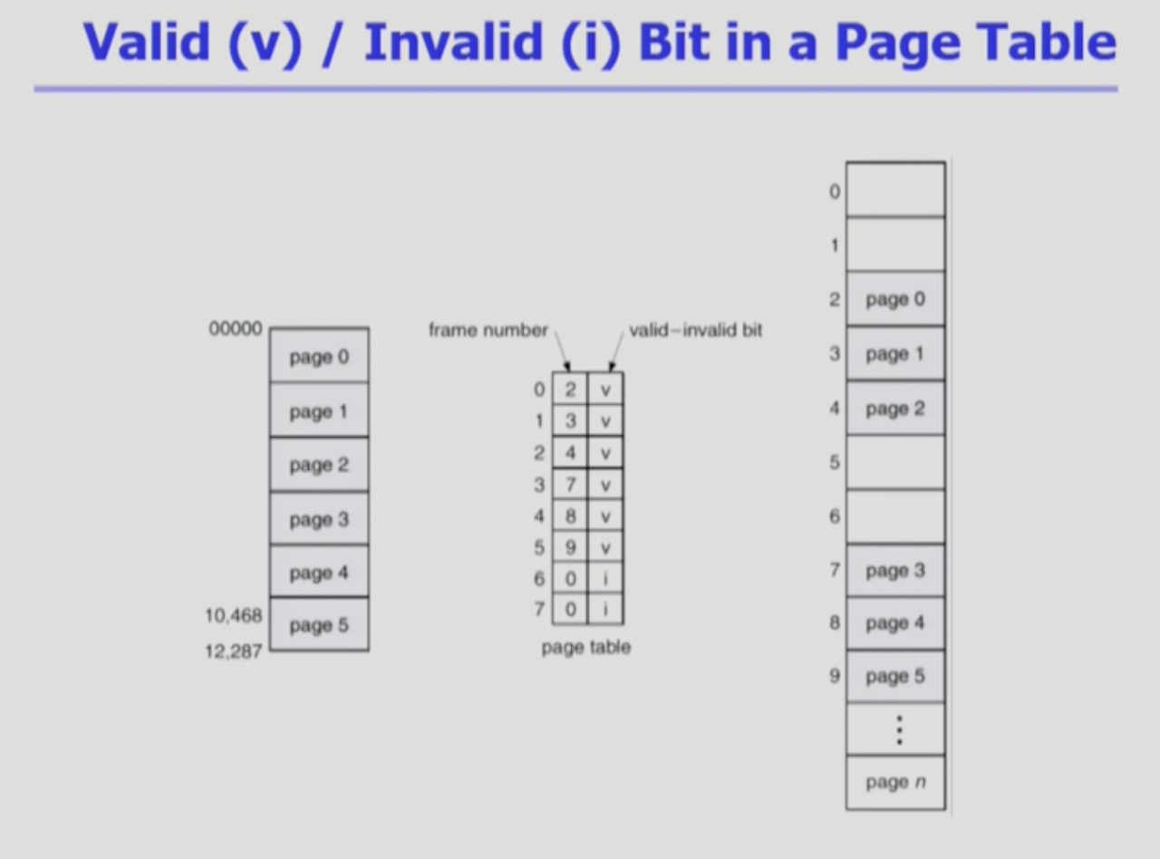 - Page table의 각 entry 마다 아래의 bit를 둔다.
