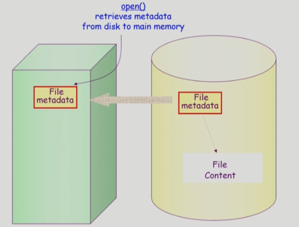 파일의 메타데이터를 메모리로 올리는 것 (system call의 일종)