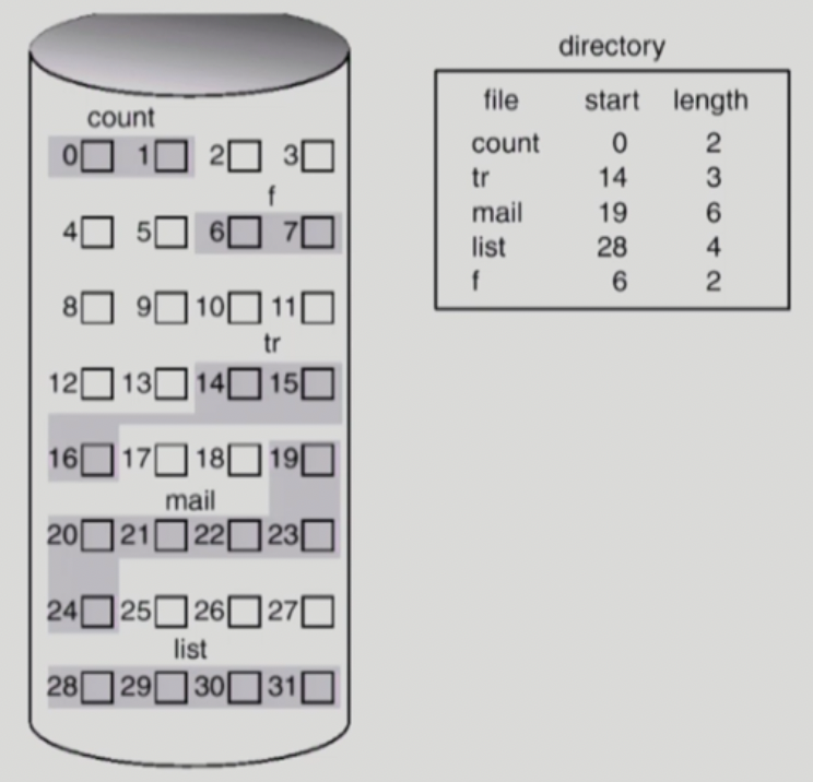 하나의 파일이 디스크에 연속해서 저장되는 방법