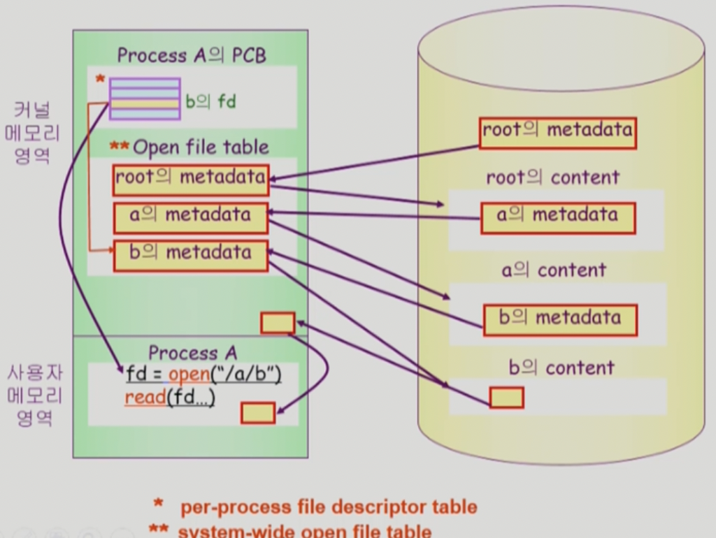 - 한번 open한 파일은 read/write 시 directory search 불필요