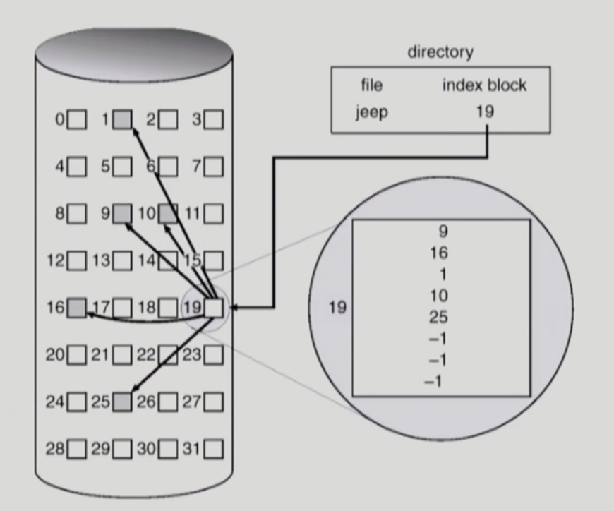 인덱스 블록 내부에 파일이 저장되어있는 블록들의 위치를 저장해놓는 방법
