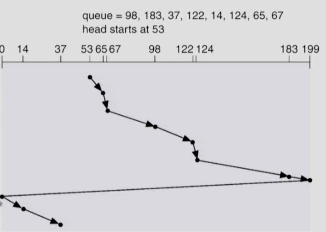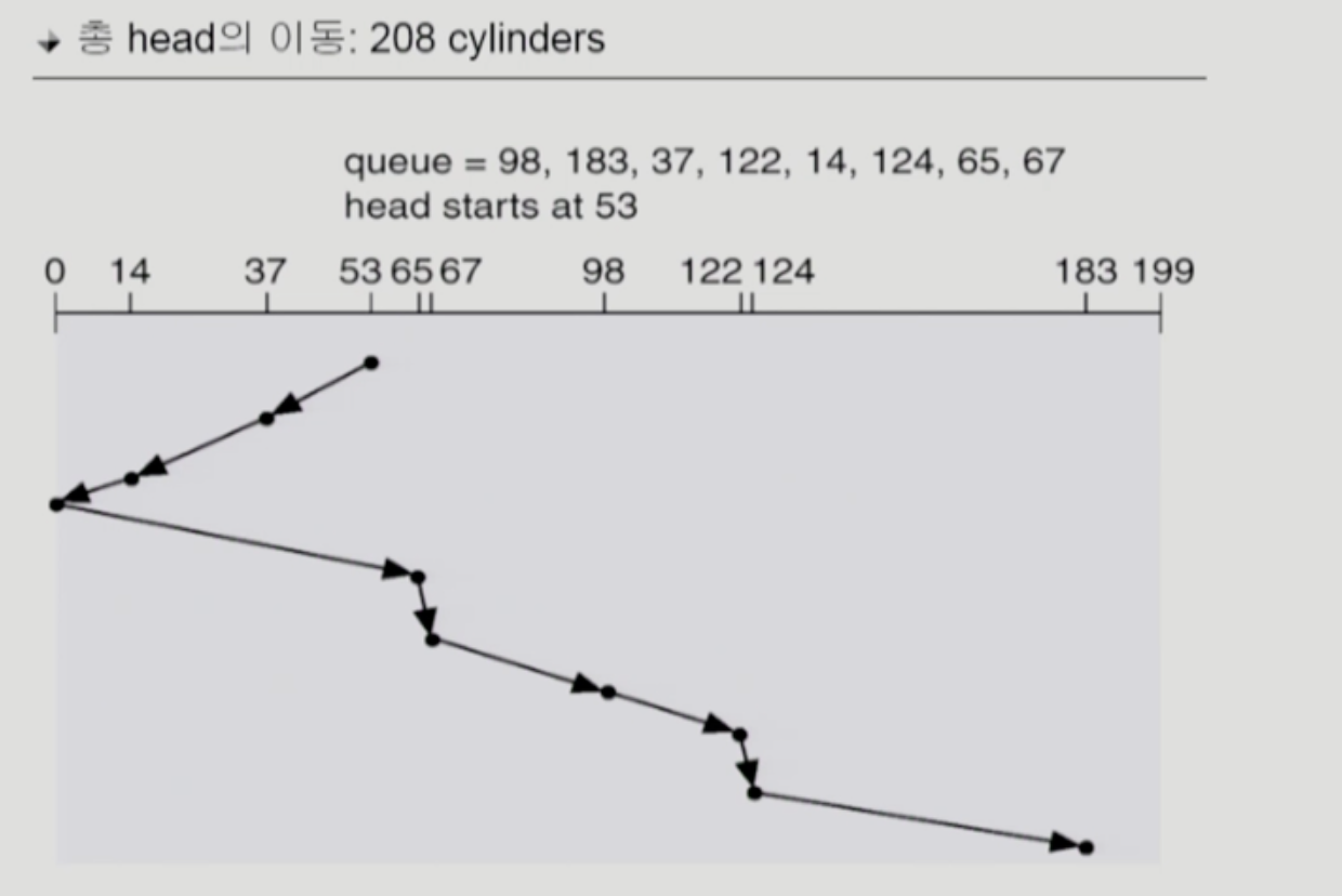 - SCAN이나 C-SCAN은 헤드가 디스크 끝에서 끝으로 이동