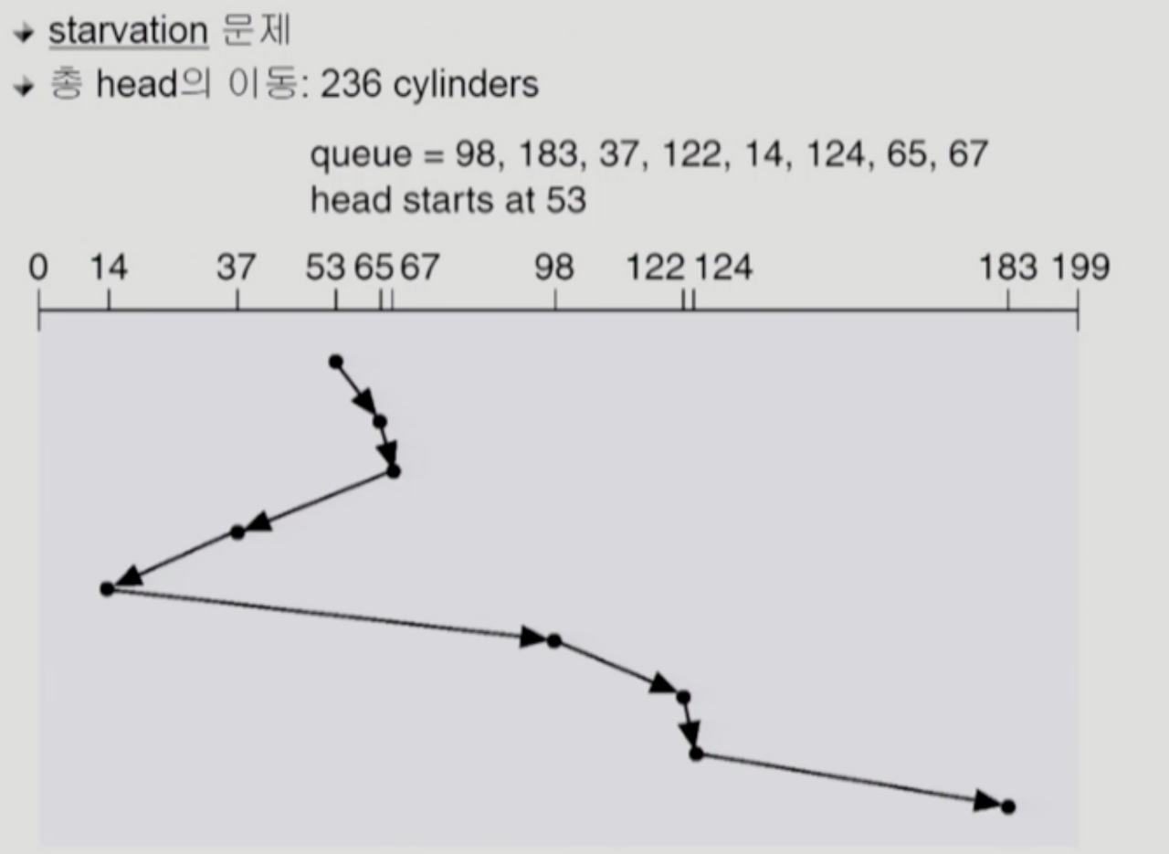 - Starvation 문제가 발생할 수 있음 → 큐에 계속 가까운 거리가 들어온다면 먼 요청은 계속 처리되지 않을 수 있음